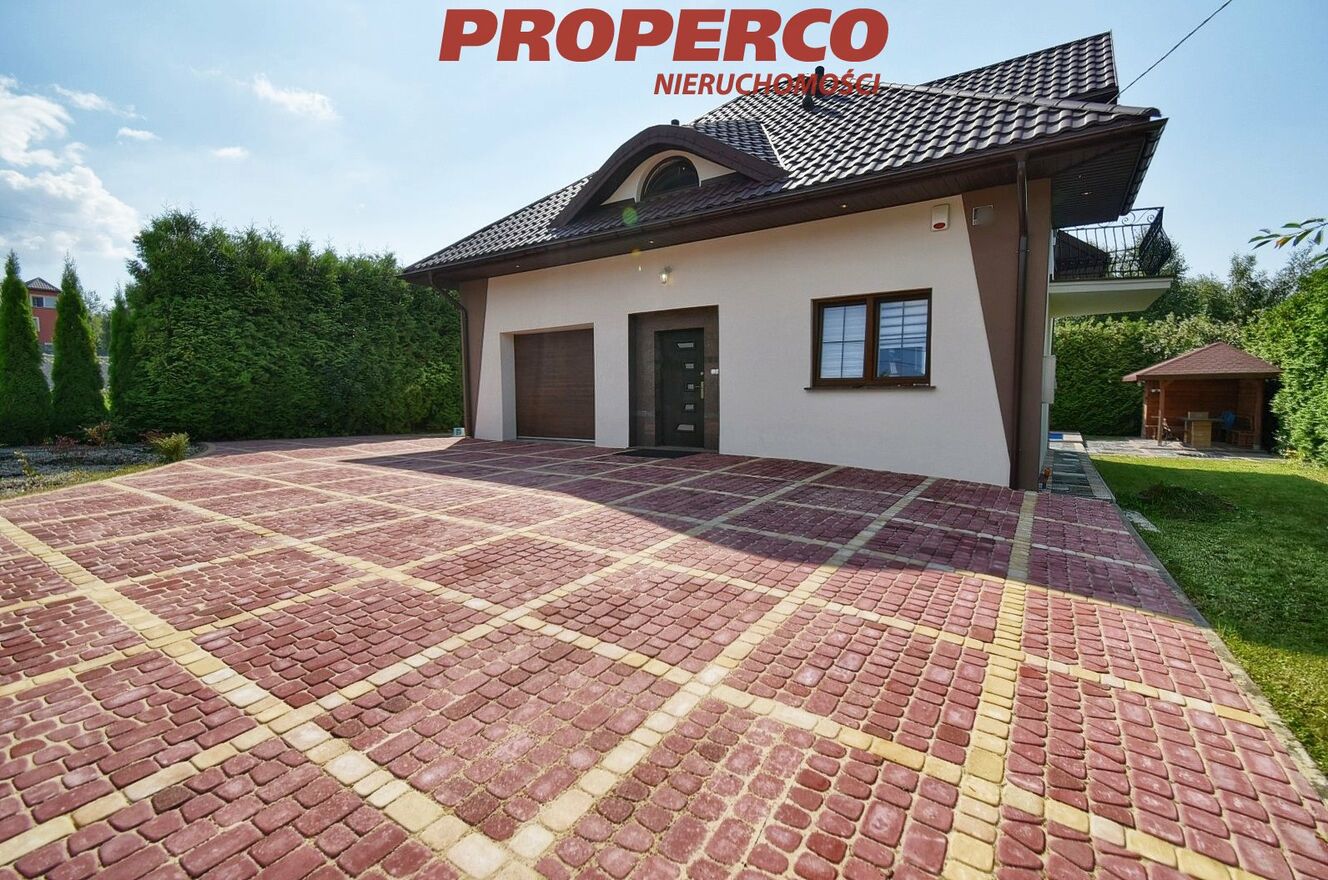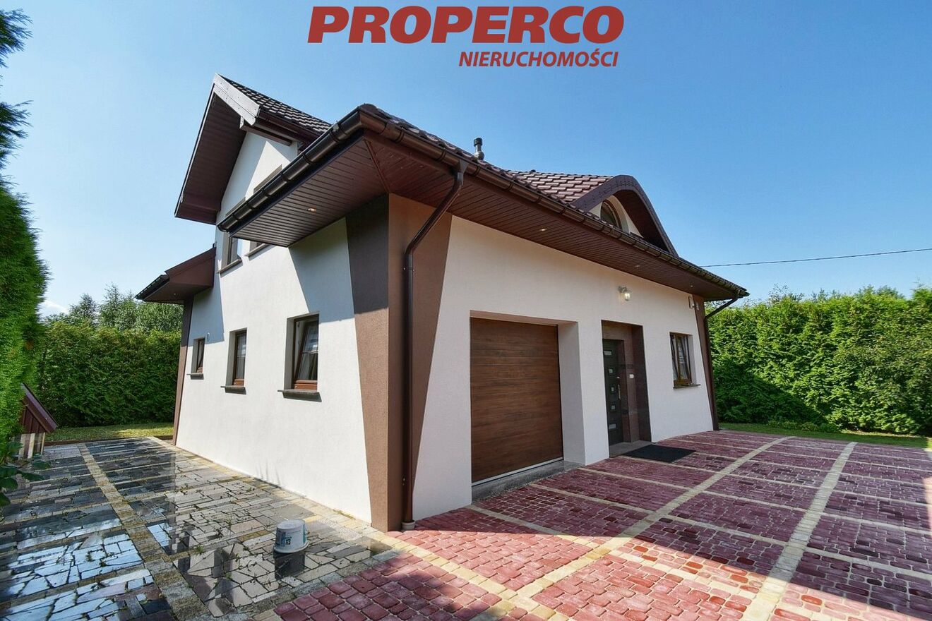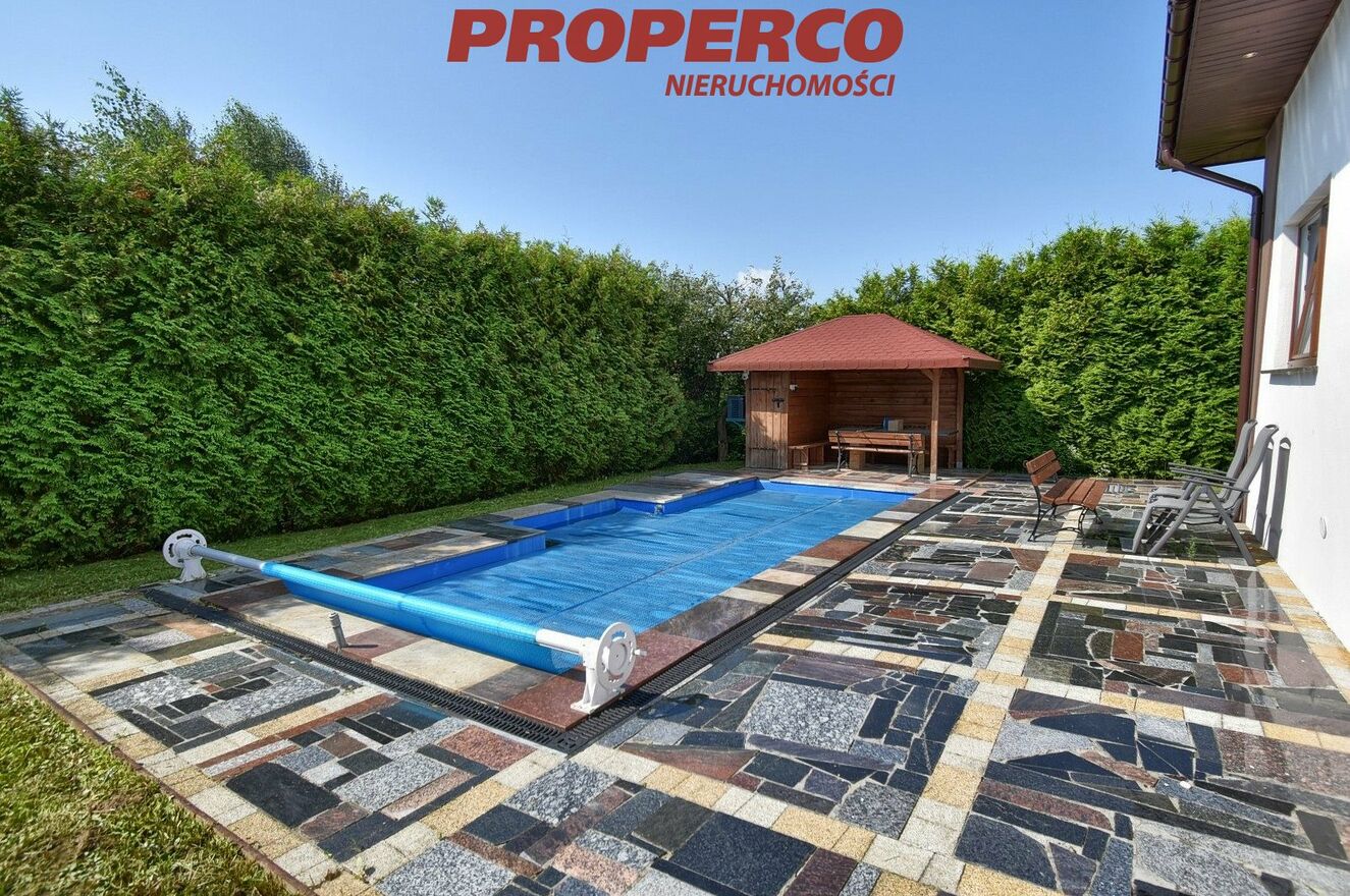 For Sale: A 4-bedroom detached house with a living area of approximately 111.48 sqm (total area approximately 134.31 sqm) with a pool, located on a plot of land measuring 598 m² in Huta Podłysica, Bieliny municipality.
